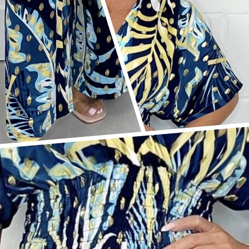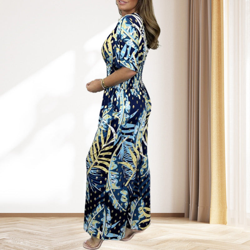 A csomag tartalmazza: 1 * NĆi nyĂĄri nyomtatĂĄs szĂ©les lĂĄb szĂ©les elasztikus derĂ©k Jumpsuit