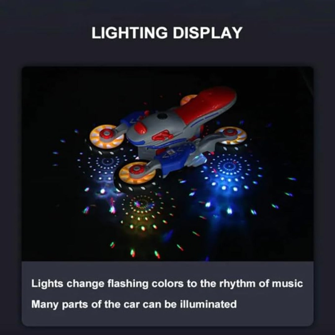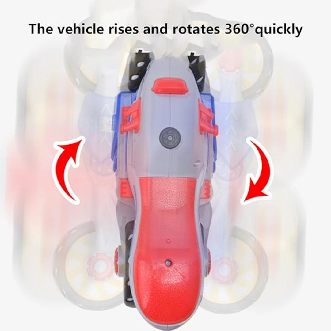 【360 fokos átalakító akció】: Nézd ámulva, ahogy ez a játék motorkerékpár átalakul, és elképesztő, 360 fokos forgásokat hajt végre. A dinamikus kialakítás izgalmasabbá teszi a játékidőt, és a gyerekeket leköti és szórakoztatja.