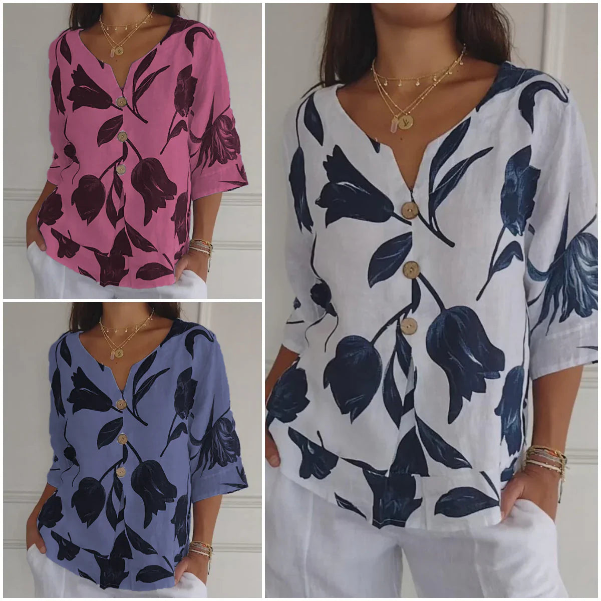 1 * Női lenvászon V-nyakú laza felső